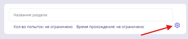 Нажмите на иконку в блоке “Название раздела” и выберите параметры ограничения попыток и по времени;