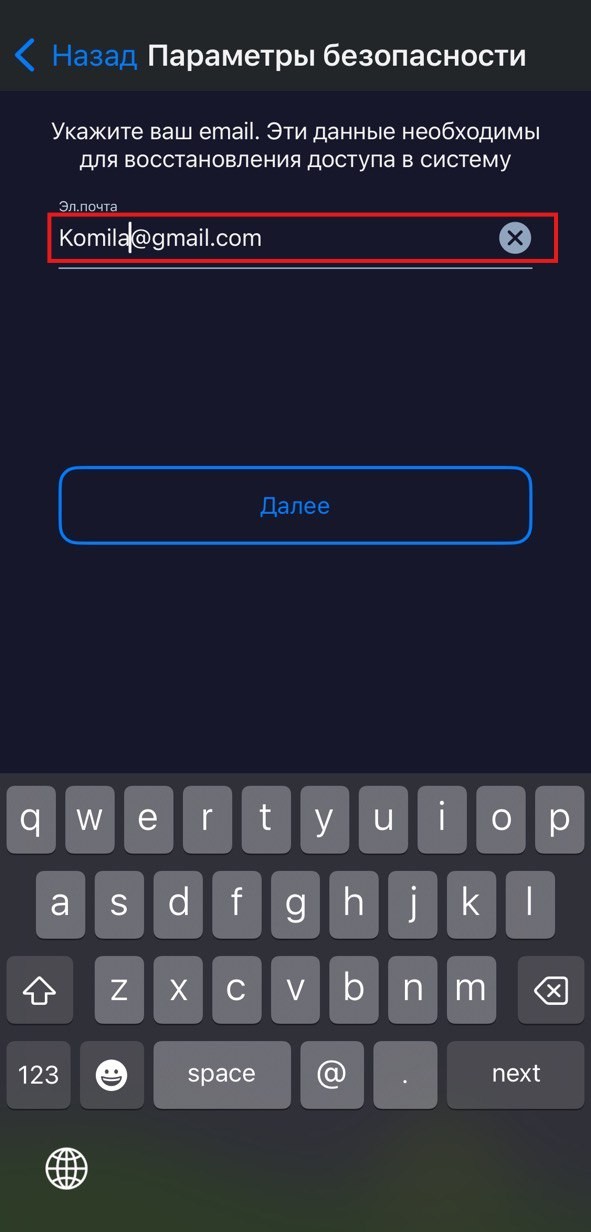На втором шаге активации нужно указать корректные данные, с помощью которых можно будет восстановить данные для входа.