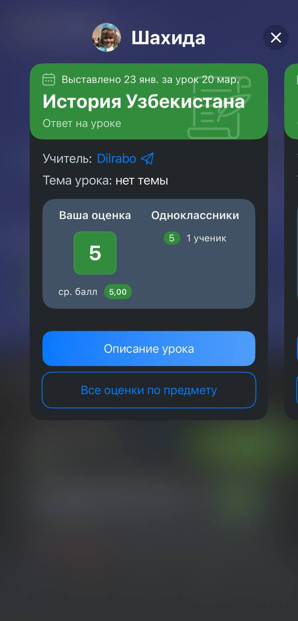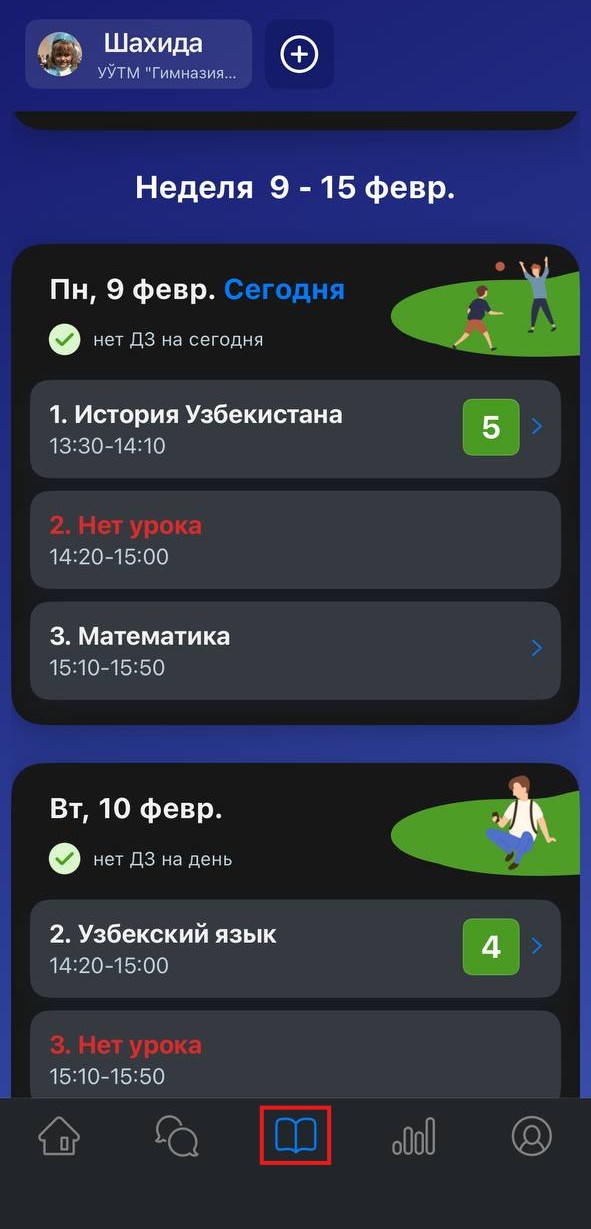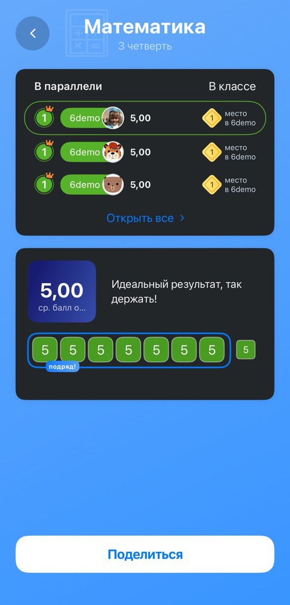 - оценки за каждый урок.