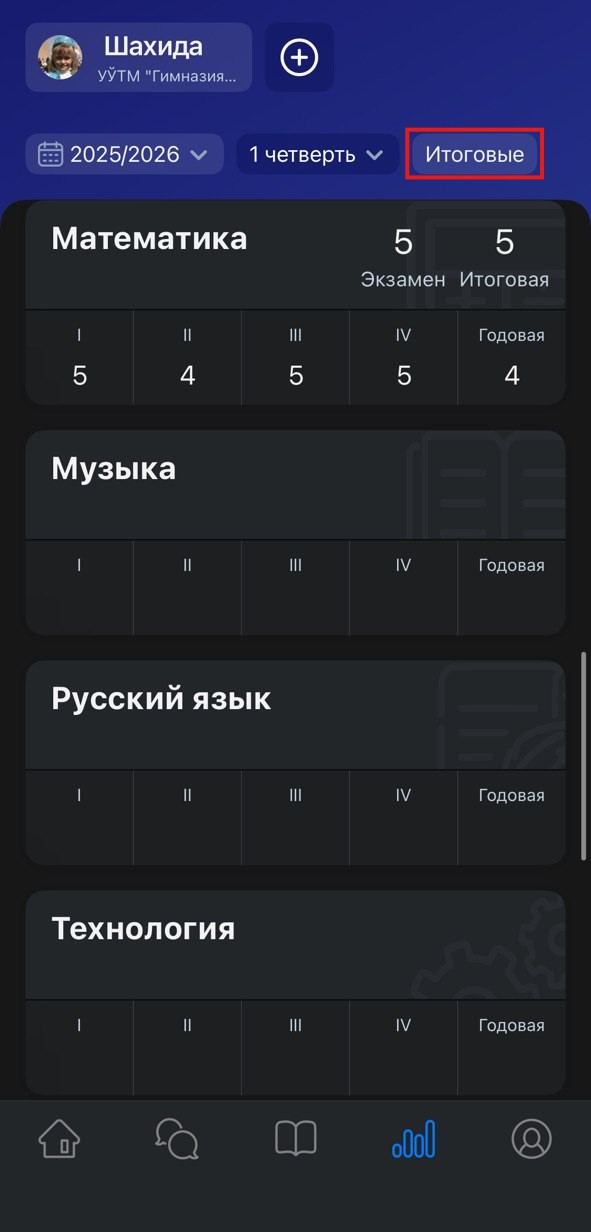 Вкладка «Итоговые» выглядит следующим образом: