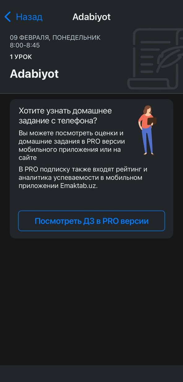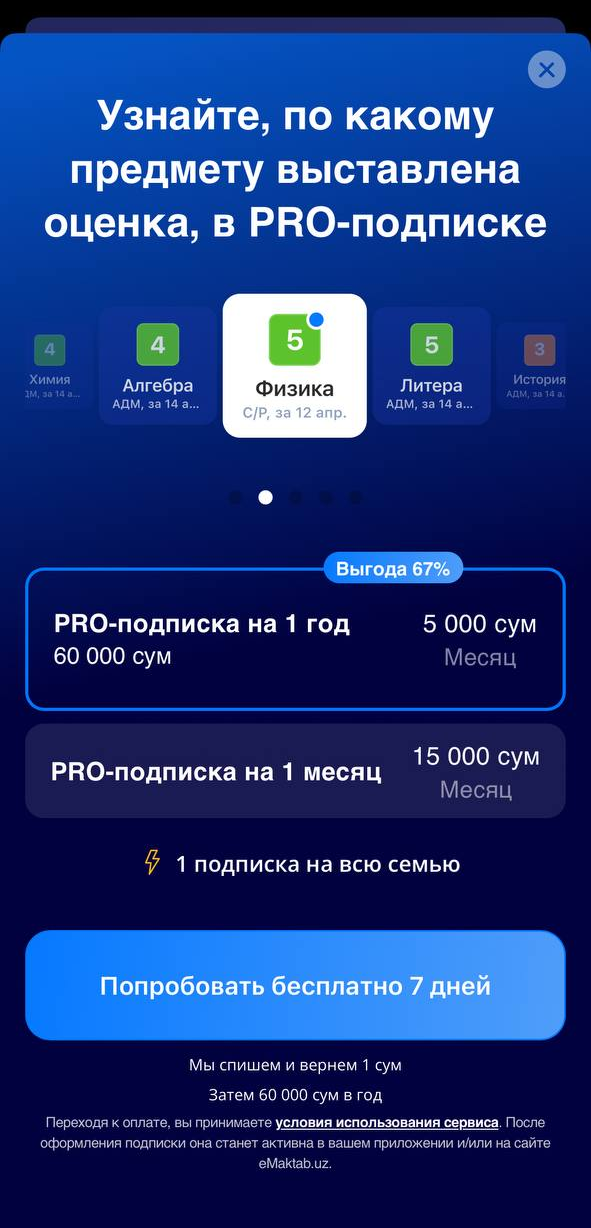 Важно: Приложения eMaktab.oila является платным и многие функции не доступны без подписки.