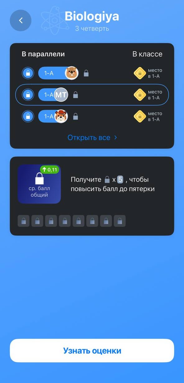 Примечание: кнопка "Сравнить с одноклассниками" ведёт на страницу предмета.