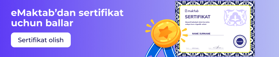 +5 qo‘shimcha ball - eMaktab’dan rasmiy sertifikat olish uchun beriladi;