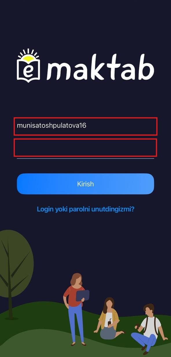 Mobil ilovasiga kirish emaktab.uz profilidagi login va parol yordamida amalga oshiriladi.