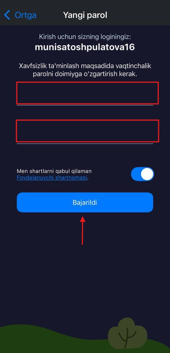 Vaqtinchalik parolni doimiy parol'ga o‘zgartirgandan so‘ng, u faollashtirilgan hisoblanadi.