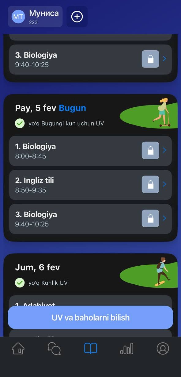 Dars haqidagi barcha ma'lumotlarni ko‘rish uchun uning ustiga bosi